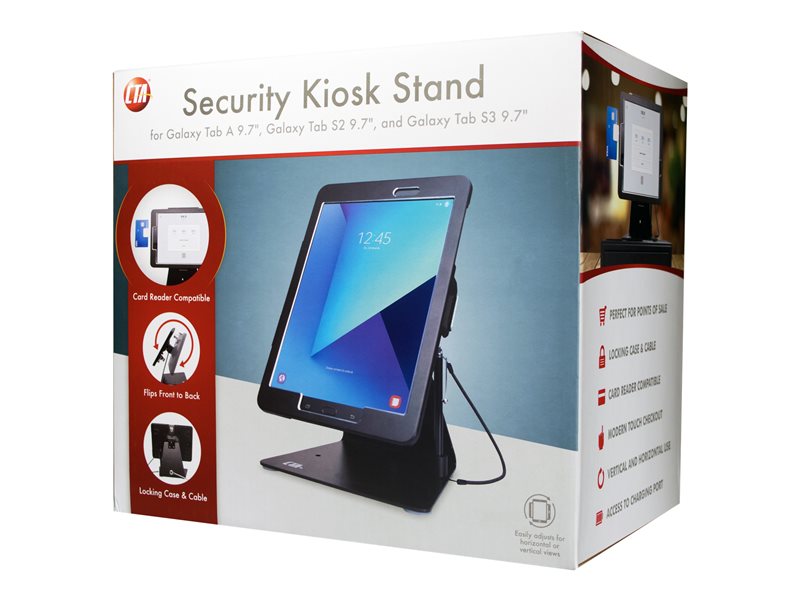 Mounting kit (anti-theft enclosure, stand base) for tablet - lockable - metal - screen size: 9.7" - desktop - for Samsung Galaxy Tab S2 (9.7 in), Tab S3 (9.7 in)