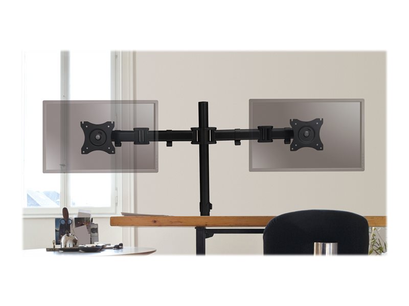 Mounting kit (C-clamp, 2 articulating arms, grommet-mount base, cable management clip) for 2 monitors - steel - black - screen size: 13"-27" - desktop